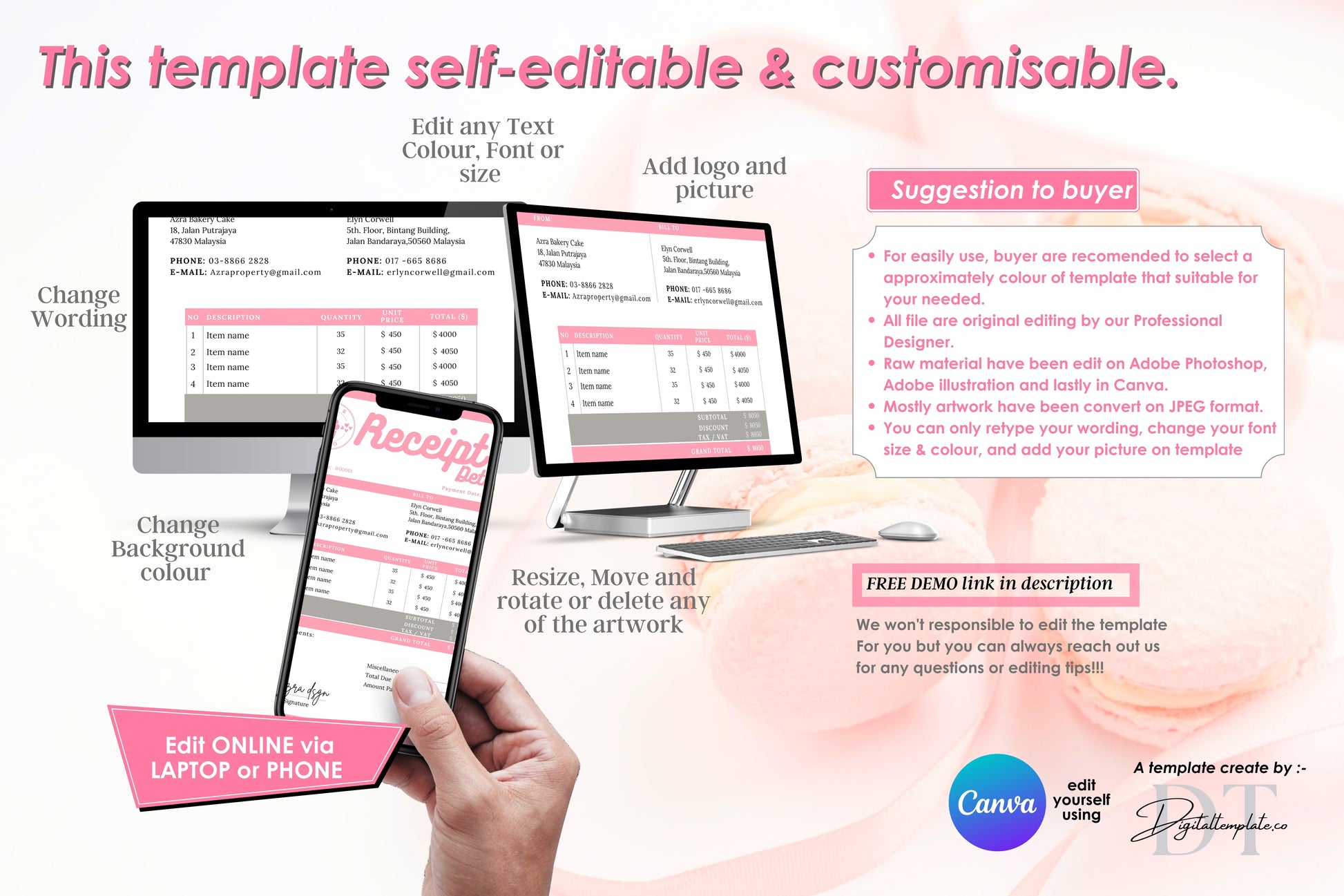 ★Your will able to edit your templates immediately after purchase through your desktop/phone in FREE version of CANVA to fit you own styles.