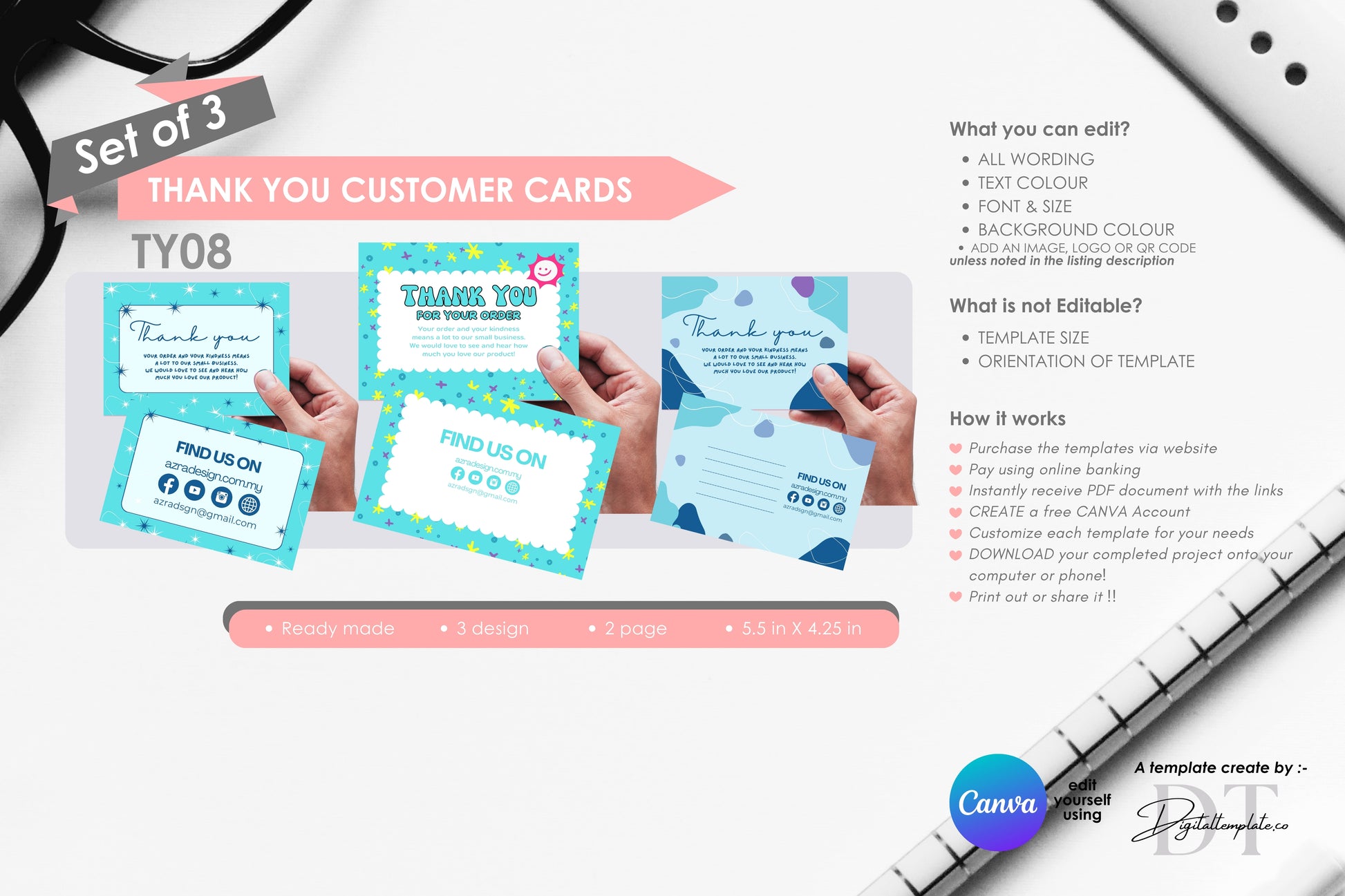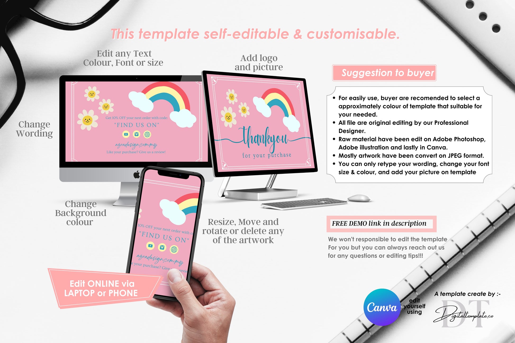 ★Your will able to edit your templates immediately after purchase through your desktop/phone in FREE version of CANVA to fit you own styles.